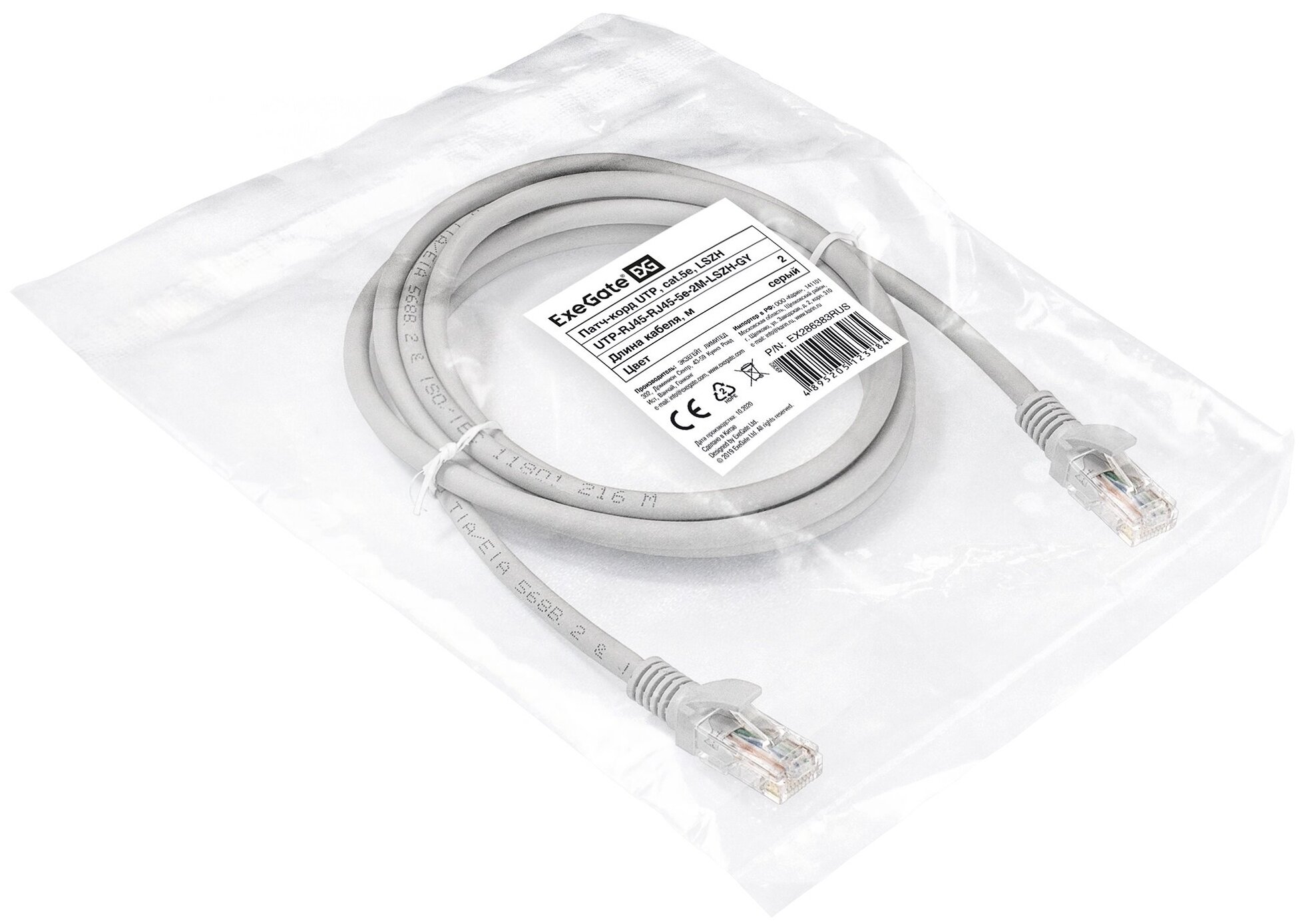 Exegate EX286383RUS Патч-корд ExeGate , UTP, cat.5e, LSZH, 2м, серый