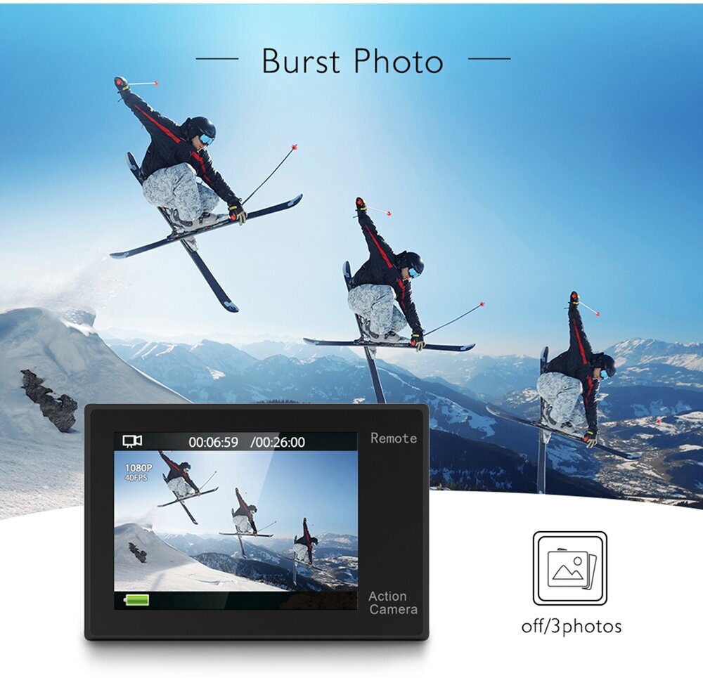 Вы можете управлять экшн-камерой на расстоянии с помощью входящего в комплект пульта дистанционного управления с защитой от брызг. Вы можете легко переключаться между видеорежимом и фоторежимом, нажимая кнопку на пульте дистанционного управления. Пульт не является водонепроницаемым.