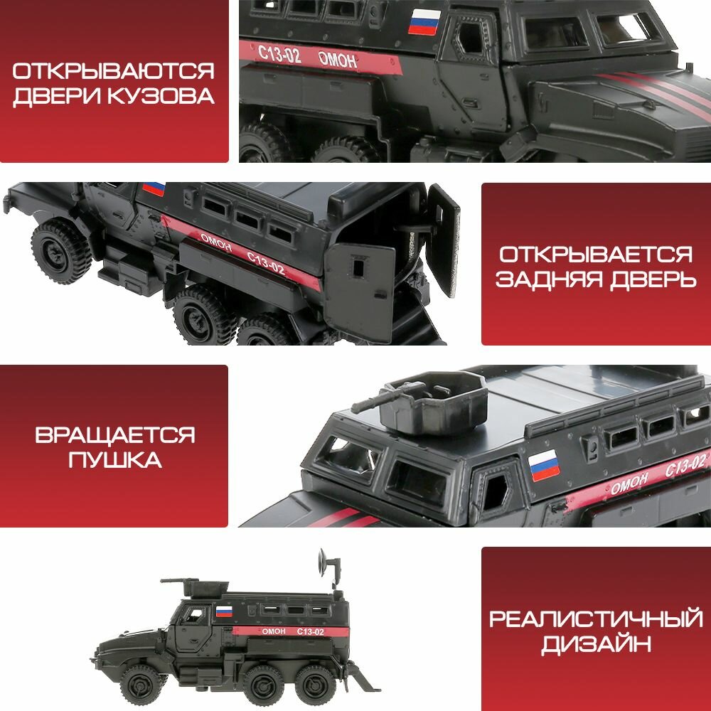 Металлические машинки от Технопарк представляют собой точную копию настоящих военных машин, и эта модель не исключение. Каждая деталь отражает боевой дух игрушки. Такое невероятное сочетание прочности, функциональности и элегантного дизайна делает эту модель одной из лучших в своем классе. Ребенок будет радоваться, создавая боевые сцены с помощью этой инерционной машинки.Данный вид военной техники не только выглядит стильно, но также имеет несколько полезных функций. Передние двери открываются, что добавляет интерактивности игре. Кроме того, откидывается задняя стенка кузова, позволяя создавать различные игровые сцены и сюжеты.Инерционный механизм делает машинку модельку еще интереснее - достаточно поставить ее на ровную поверхность, потянуть за корпус назад и отпустить, она быстро начнет двигаться вперед. Длина этой модели военного броневика составляет 12 см, что делает ее компактной и удобной, чтобы хранить или носить с собой. Машинка выполнена из прочного металла и пластмассы, что обеспечивает ее долговечность и надежность в самых активных играх. Любой ребенок будет в восторге от такого подарка на Новый год или День Рождения! Ведь эта инерционная машинка может стать частью захватывающих игр и приключений маленького военного командира. А когда наступят праздники 23 февраля или 8 марта, такая модель станет оригинальным подарком для мальчика или девочки, которые мечтают об игрушечной военной технике.