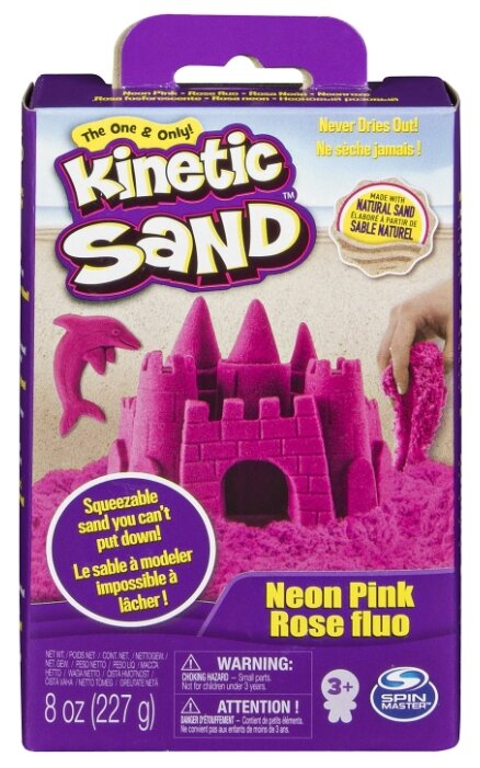 В кинетический песок хочется играть бесконечно - тебе просто не захочется выпускать его из рук! Он течёт сквозь пальцы, а волшебство заключается в том, что руки остаются абсолютно сухими. Кинетический песок развивает в детях творческие способности, ведь они могут создавать бесконечно много новых поделок. В упаковке целых 227 грамм розового песка, и это - масса возможностей для игры! Кинетический песок никогда не высыхает, он мягкий и легко собирается с поверхностей. Наслаждайся игрой с кинетическим песком от Спин Мастер! Кинетический песок очень послушный. Лепить из него настолько приятно, что остановиться просто невозможно. Кинетический песок развивает творческие способности, он сделан из полностью натурального песка, никогда не высыхает, и, благодаря тому, что его частицы приклеиваются друг к другу, его легко убирать с поверхностей. Кинетический песок сделан из полностью натурального песка, не содержит пшеницу и глютен. Кинетический песок предназначен для детей от 3 лет. В комплекте:227 грамм кинетического песка (розовый),