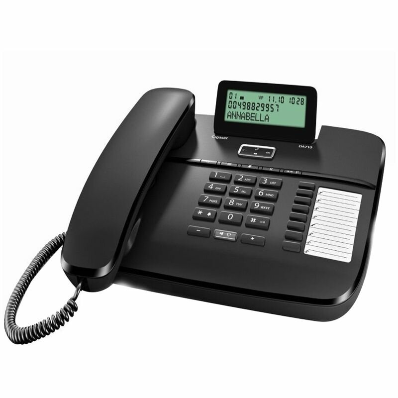 Функциональный и удобный телефон, который можно использовать как дома, так и на работе. Модель имеет классическую черную расцветку и компактные размеры. Главной функцией устройства считается наличие встроенной записной книжки. Пользователи смогут добавлять в нее до 100 телефонных номеров. Дополнительно устройство оснащено 8 кнопками прямого набора (предназначается для шестнадцати номеров). Модель DA710 имеет небольшой электронный дисплей с возможностью изменения угла наклона.