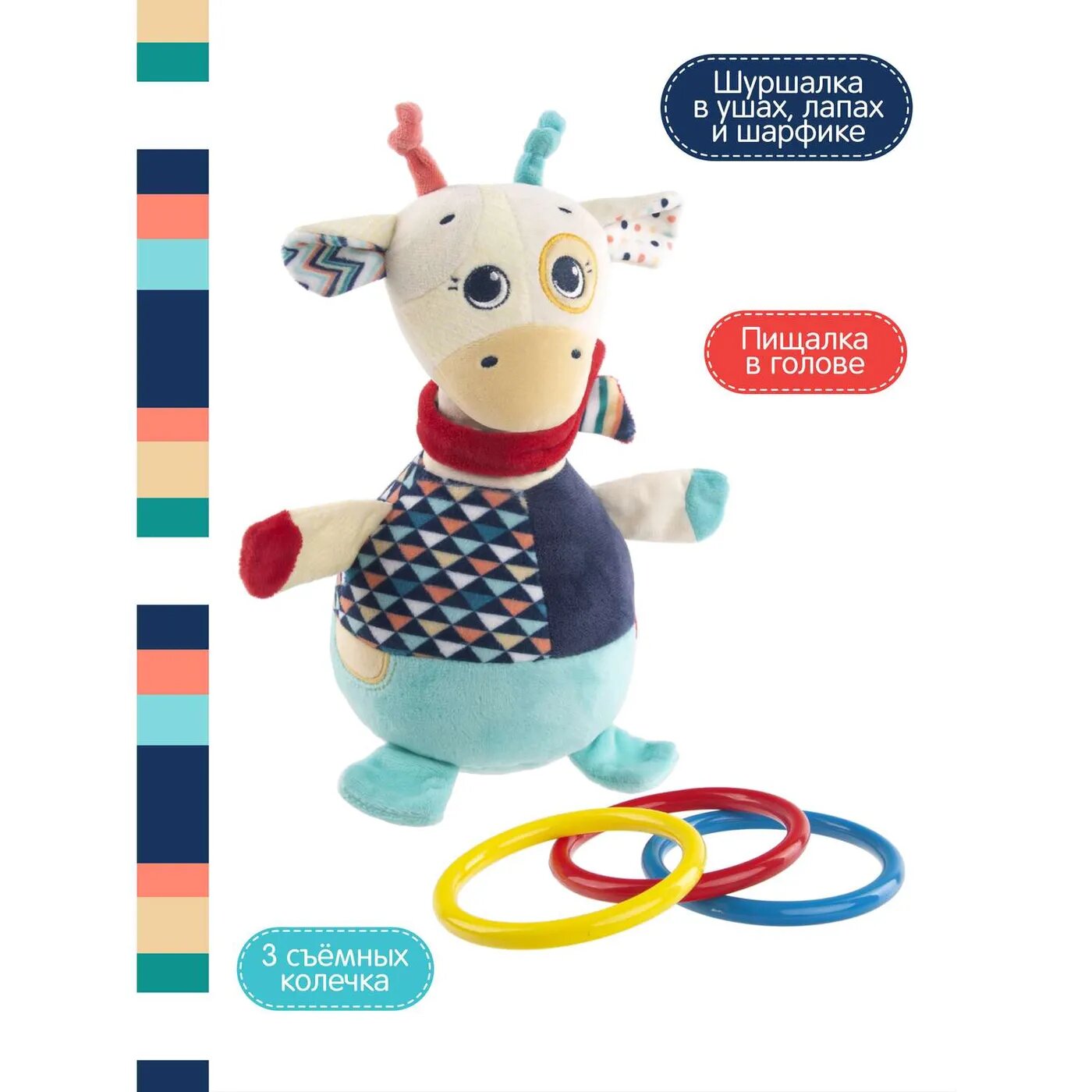 Happy Snail - это бренд развивающих игрушек для малышей. Их игрушки-неваляшки качаются и издают мелодичный звон. Они также имеют съемные колечки, которые можно использовать в качестве элементов игры.Развивающая игрушка-неваляшка "Жираф Спот" от Хепи Снейл приведет в восторг вашего малыша. У него есть пищалка и шуршалки в голове, ушах и лапах, которые помогут развить двигательную активность и мелкую моторику.Эта игрушка станет отличным подарком для вашего ребенка! Она поможет ему развить слух, цветовое восприятие и мелкую моторику рук.
