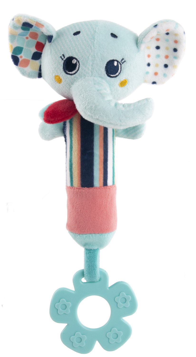 В игрушке:пищалка в корпусешуршалка в ушах и телепрорезывательпогремушка в головz Игрушка Слоник Джамбо с пищалкой внутри понравится любому малышу. При небольшом нажатии на корпус, малыш услышит забавный звук пищалки. Ушки и корпус шуршат. А в голове есть погремушка. Мягкий прорезыватель в виде цветочка пригодится чуть позже, когда начнут резаться зубки.