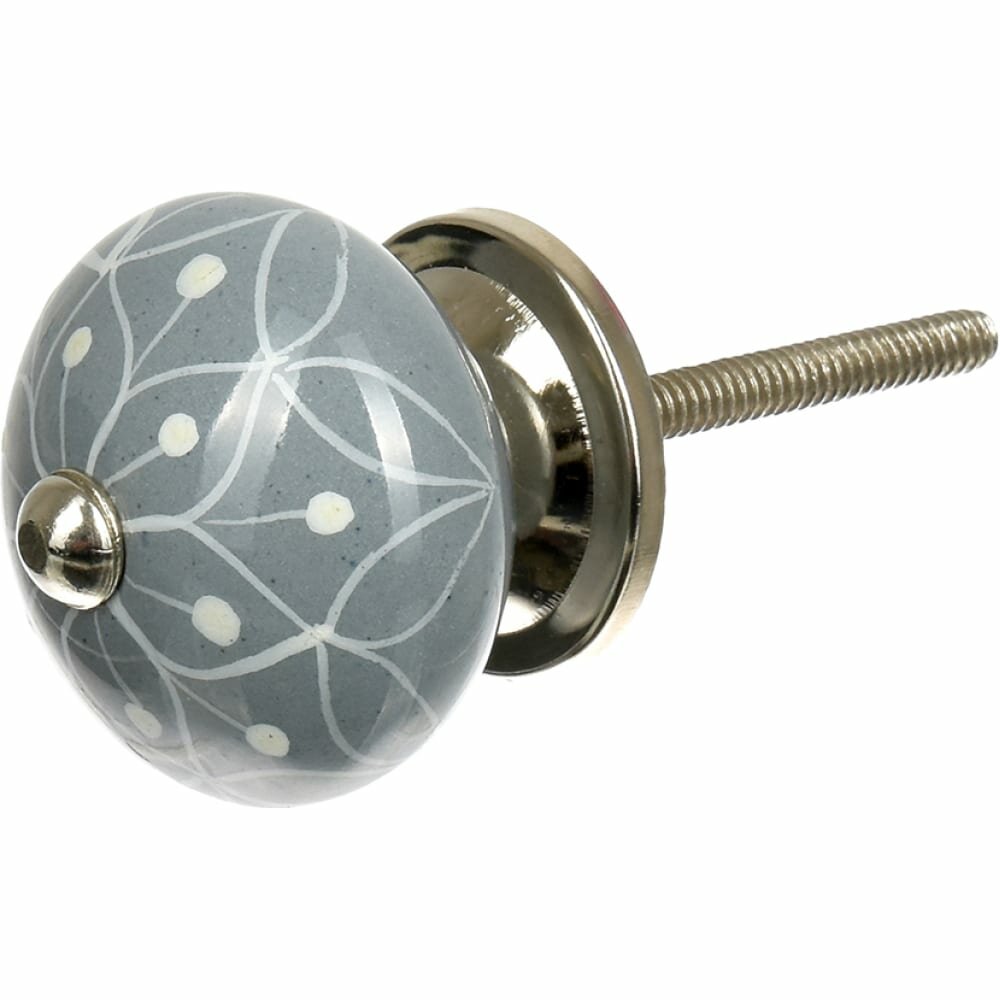 Ручка мебельная BLUMEN HAUS Паутинка керамическая серо-белая Преимущества: - Ручная роспись - Утонченный дизайн - Высокое качество - Эксклюзивный элемент для декорирования мебели Предназначена для декорирования выдвижных ящиков, дверей тумбочек и шкафов. Материал: керамика, сталь Вес: 0,068 кг Хранение: при температуре от -40 до +50 ˚С Срок годности: не ограничен