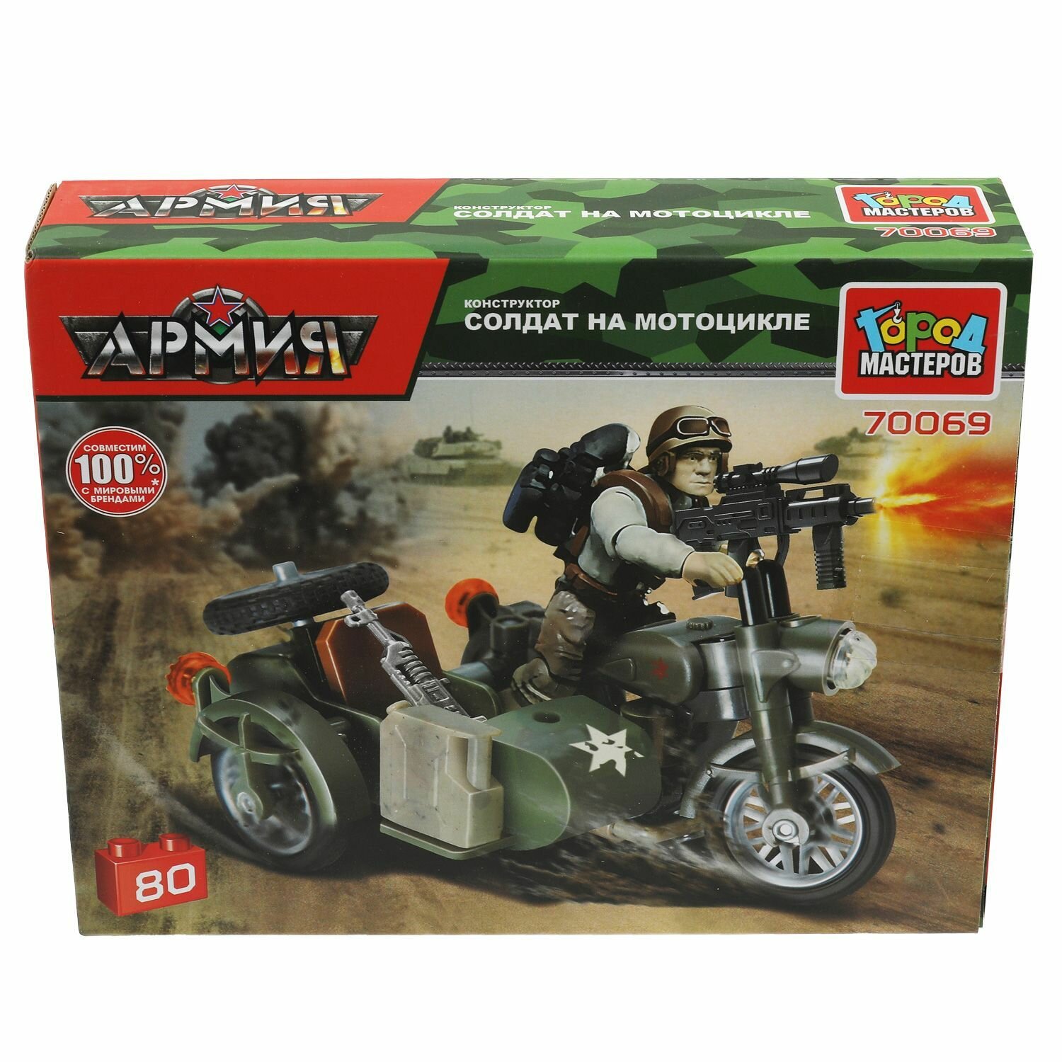 Конструктор Город мастеров Солдат на мотоцикле с коляской (80 деталей)
