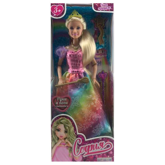 У Софии длинные красивые волосы, которая хозяйка куклы сможет собирать в разные причёски. Детально проработанный дизайн игрушки вдохновит девочку на новые игровые сюжеты.