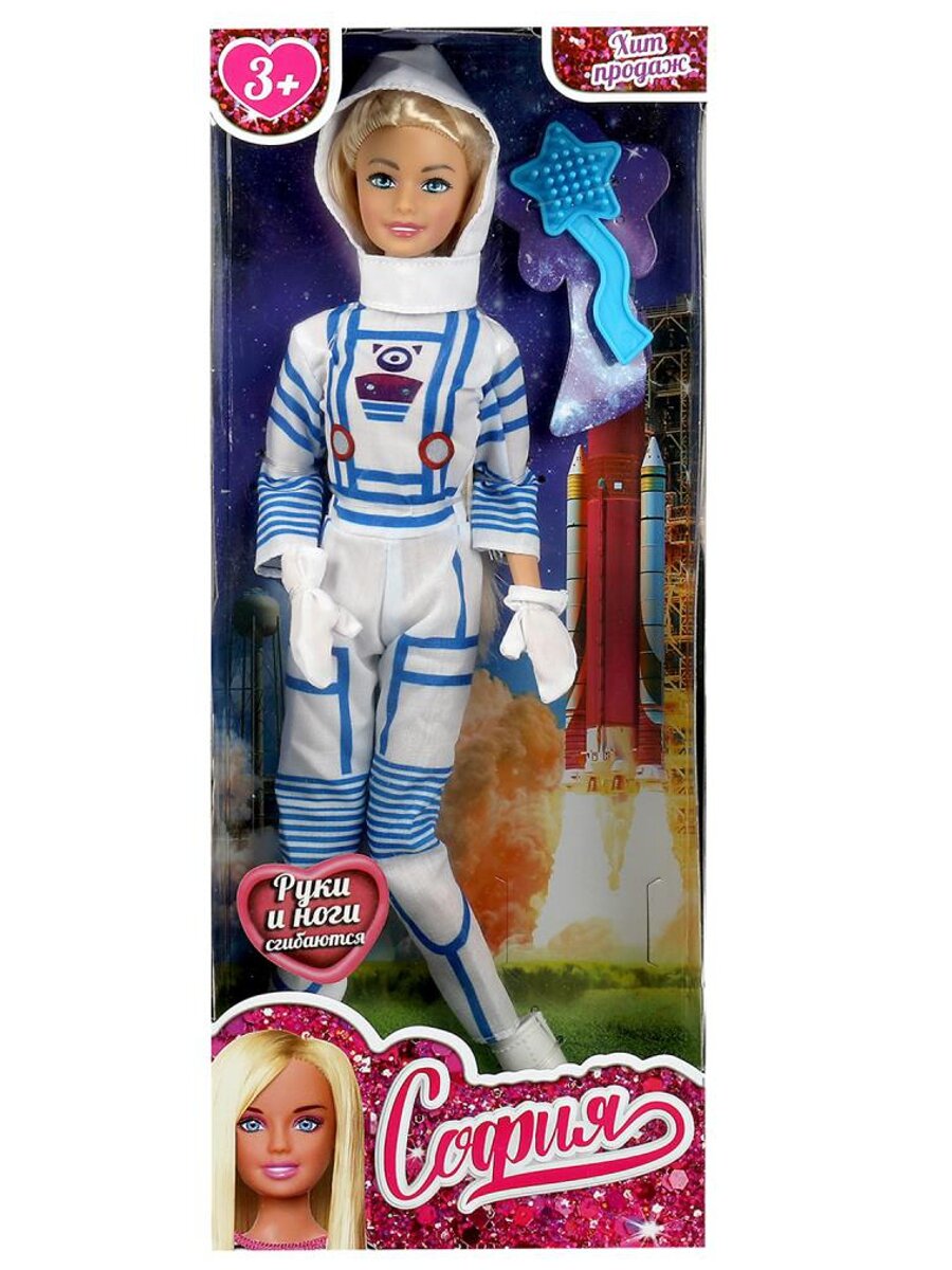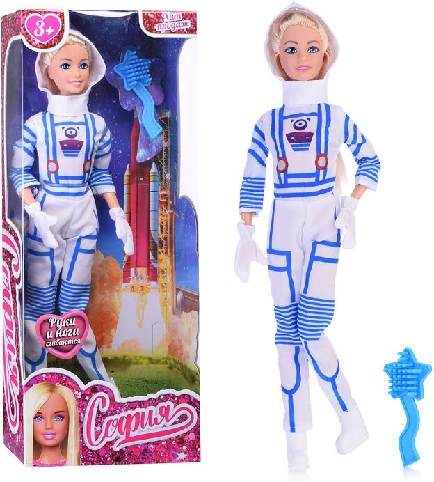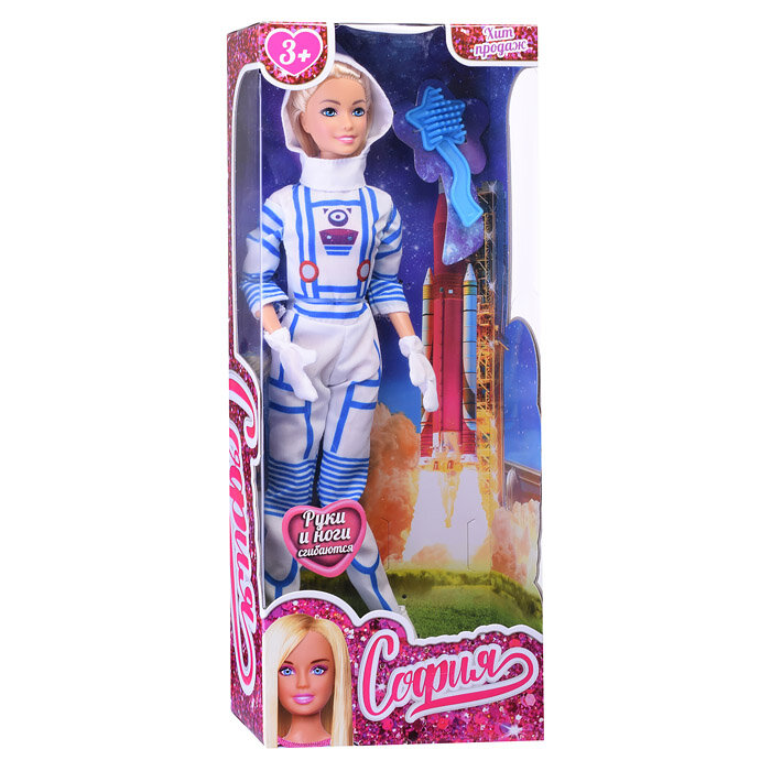 У Софии длинные красивые волосы, которые хозяйка куклы сможет заплетать в разные причёски. Детально проработанный дизайн игрушки вдохновит девочку на новые игровые сюжеты и познакомит ребёнка с профессией астронавта.