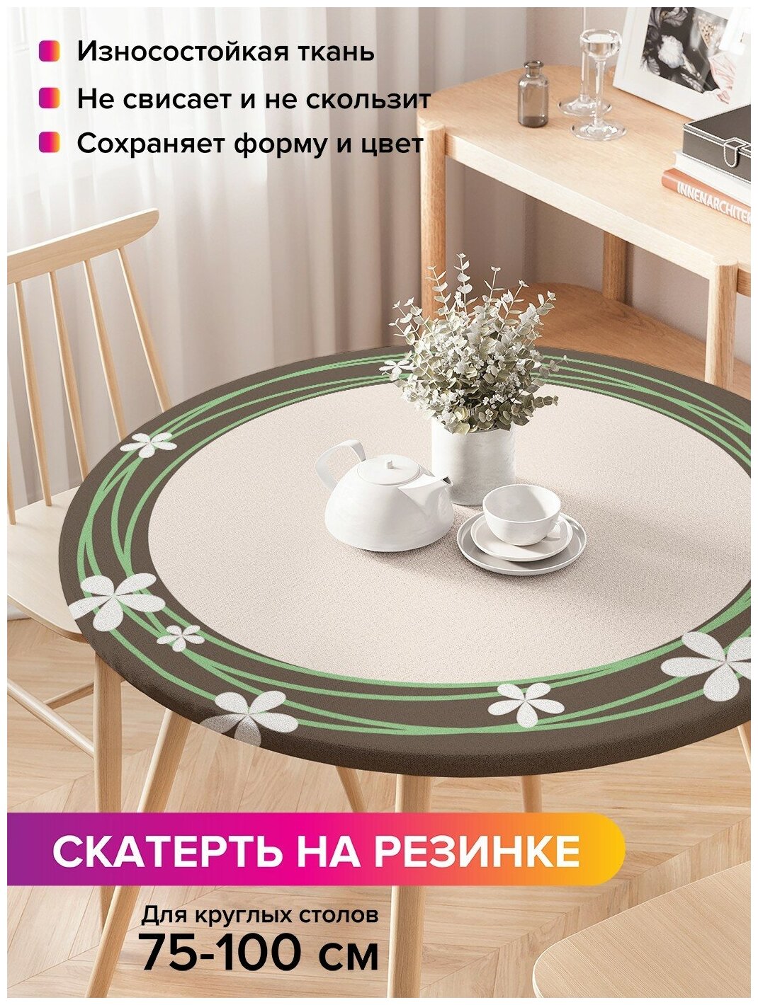 Круглая кухонная скатерть на резинке JoyArty на круглый стол диаметром 105-120 см Скатерть на кухонный стол Круг с цветами круглая на резинке 105x120 см
