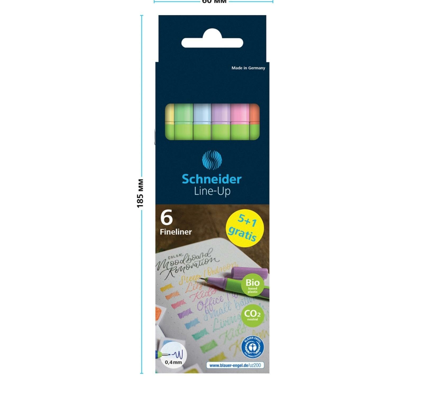 Набор капиллярных ручек Schneider Line-Up пастельных тонов. В наборе 6 капиллярных ручек ванильного, мятного, голубого, сиреневого, розового и абрикосового цвета. Цвет колпачка соответствует цвету чернил. Диаметр пишущего узла ручки составляет 0,4 мм, толщина линии письма 0,4 мм. Эргономичный трехгранный прорезиненный салатовый корпус.
