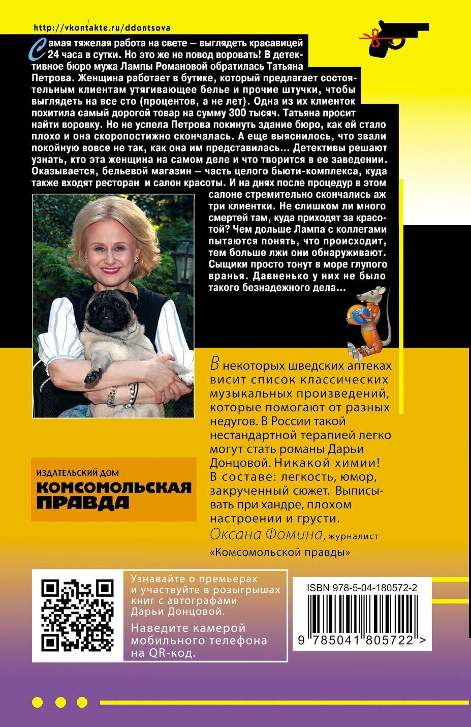 Самая тяжелая работа на свете — выглядеть красавицей 24 часа в сутки. Но это же не повод воровать! В детективное бюро мужа Лампы Романовой обратилась Татьяна Петрова. Женщина работает в бутике, который предлагает состоятельным клиентам утягивающее белье и прочие штучки, чтобы выглядеть на все сто (процентов, а не лет). Одна из их клиенток похитила самый дорогой товар на сумму 300 тысяч. Татьяна просит найти воровку. Но не успела Петрова покинуть здание бюро, как ей стало плохо и она скоропостижно скончалась. А еще выяснилось, что звали покойную вовсе не так, как она им представилась… Детективы решают узнать, кто эта женщина на самом деле и что творится в ее заведении. Оказывается, бельевой магазин — часть целого бьюти-комплекса, куда также входят ресторан и салон красоты. И на днях после процедур в этом салоне стремительно скончались аж три клиентки. Не слишком ли много смертей там, куда приходят за красотой? Чем дольше Лампа с коллегами пытаются понять, что происходит, тем больше лжи они обнаруживают. Сыщики просто тонут в море глупого вранья. Давненько у них не было такого безнадежного дела…