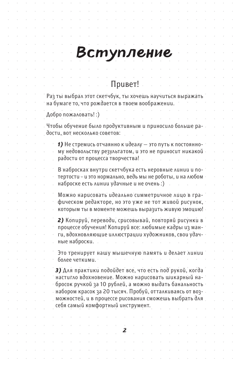 Чтож собственно начну. Это единственная книга на мой момент, когда практика идёт вместе со знаниями внутри книги, то есть есть готовые наброски и оставляют поле для вас чтобы рисовать и оценить как получилось, а если же боитесь настройте руку на готовом эскизе и попытайтесь скопировать, получится набить руку, художник человек проходящий через практику, нежели теорию. Также начало ну прям для чайников, и очень просто(например в книжке у автора Макото с самого начала идёт обучение перспективе, а если у вас нет опыта в рисовании вы просто потеряетесь и забросите как было и у меня, здесь же перспектива идёт ближе к концу когда у тебя уже рука набита), половина книге оставляется вам на практику мангаки хотя скорее румангаки, так что вот, книжка очень хорошая в теоритическом и практическом плане, для слабого художника который боится начать рисовать, ну прям объясню первую страницу, вы рисуете полоски или же штриховка даже если вы боитесь и этого также есть эскизы и уже с них можете практиковаться, ну прям реально для чайников. Альбин спасибо за твою книжку! Это единственная книжка которая прям ну начинается желание рисовать, главное не забрасывать.