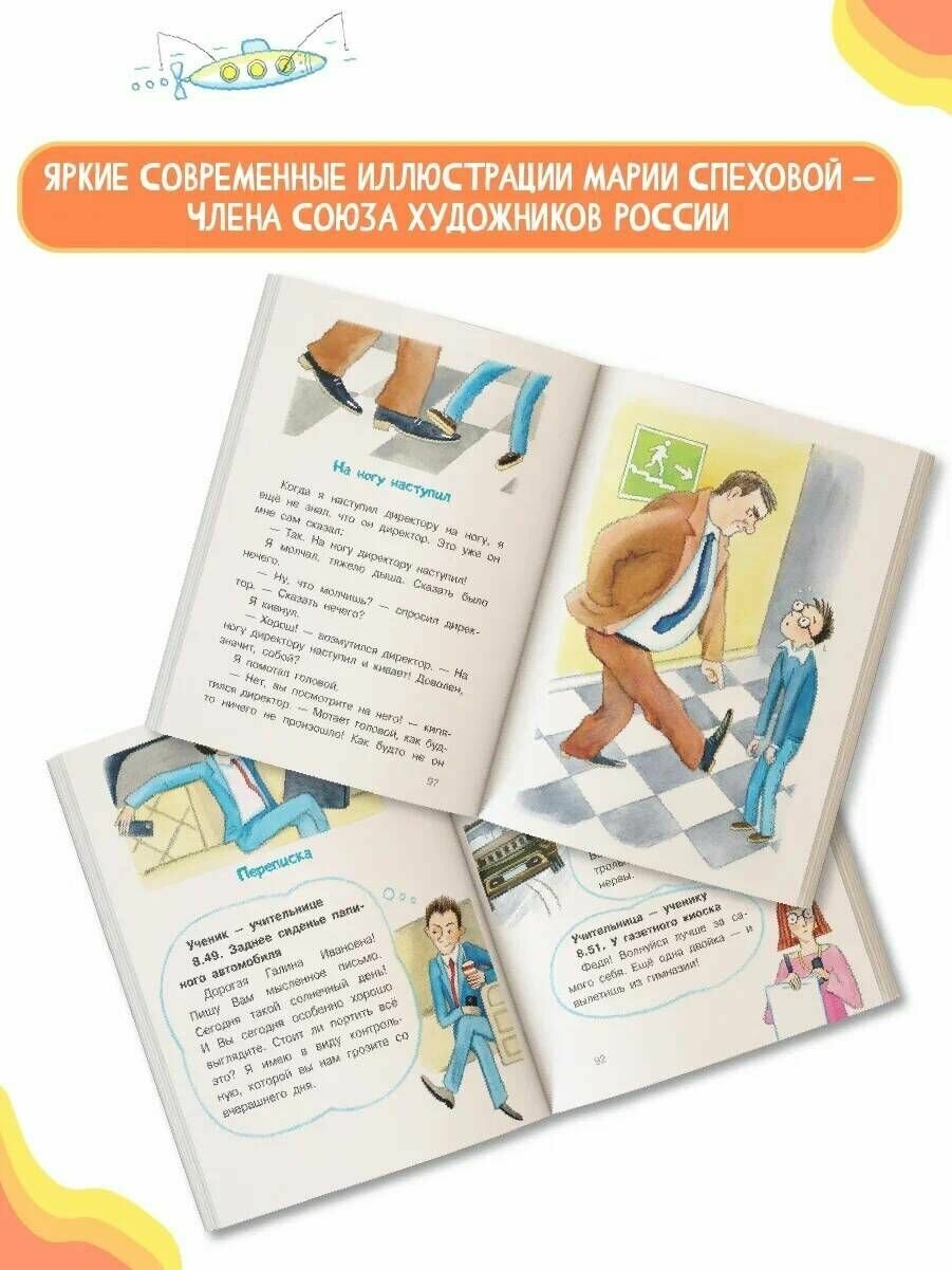 Купила младшему брату-второкласснику, читали вместе, брат в восторге. Яркие забавные иллюстрации отлично дополняют текст и зрительно его уменьшают – ребёнка проще убедить почитать подольше. Язык написания очень удачный: лёгкий, с юмором. Распробовав, братик даже моей помощи читал с удовольствием. Хорошо, что это сборник рассказов, можно всегда начать с любого, очень удобно.