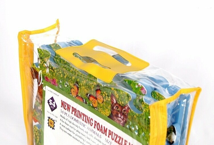 Пазлы EVA - увлекательная обучающая игра для детей от 3-х лет. Собирая картинку из крупных ярких деталей, ребенок развивает воображение, мышление, внимание, память и мелкую моторику.Плитки мозаики крупные, с ярким рисунком, изготовлены из экологически чистого, мягкого и приятного на ощупь материала, поверхность которого устойчива к истиранию. Напольная мозаика Мир животных может быть и теплым ковриком для игры на полу, и самостоятельной игрушкой. Набор состоит из 6 крупных деталей и 12 вынимающихся плиток с изображением животных. Размер каждой детали - 320 х 320 мм.