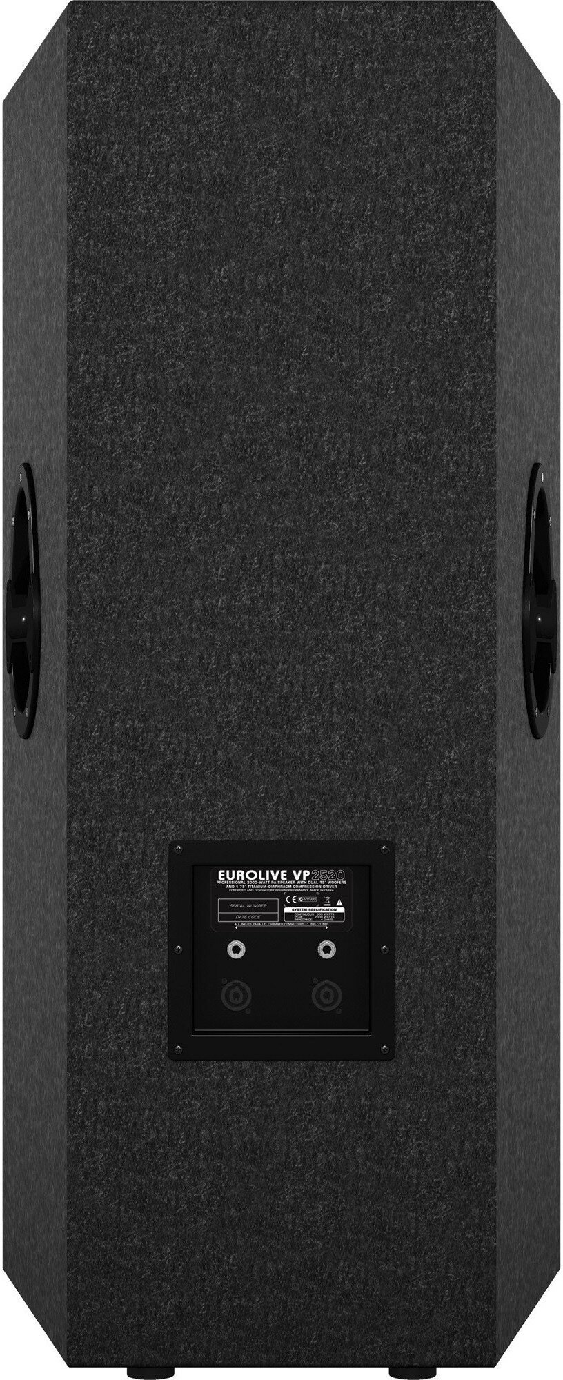 BEHRINGER EUROLIVE VP2520 - это широкополосная, пассивная акустическая система, цвет кабинета черный. Акустика рассчитана на использование в составе концертных аудиосистем. Мощности АС вполне хватает для помещениях среднего размера, например небольших клубов и концертных залов. Акустическая система оснащена большим, длинноходным НЧ-вуфером (х 2), диаметром 15 дюймов и ВЧ-твитером, диаметром 1,75". Мощность системы составляет 1000 Вт. (peak). Диапазон воспроизводимых частот 50 Гц. - 22 кГц., звуковое давление - 96 дБ., сопротивление 4 Ом. Акустика прекрасно справляется с воспроизведением музыки и передачи вокального исполнения. Кабинет АС имеет специально разработанный дизайн, который положительно влияет на его акустические свойства. Пассивная акустическая система BEHRINGER EUROLIVE VP2520 может быть установлена непосредственно на пол, на подставки, или же на стойки, для которых предусмотрен установочный стакан внизу кабинета (опционально некоторые модели). Габариты акустической системы составляют 550 х 520 х 1009 мм., вес - 44 кг. Коммутация системы на разьемах Neutrik Speakon и 1/4 Jack.