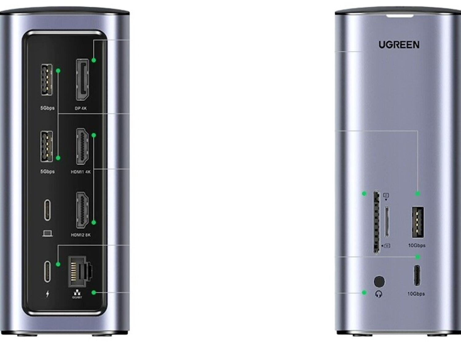 Использую эту док-станцию в офисе для подключения множества устройств. Это удивительный девайс. Все необходимые порты есть. Никаких больше доп.переходников! Подключение устройств происходит без задержек. Смотрится солидно и добротно. Учитывая внушительный функционал и качество - цена адекватная. Жирный лайк бренду Ugreen.