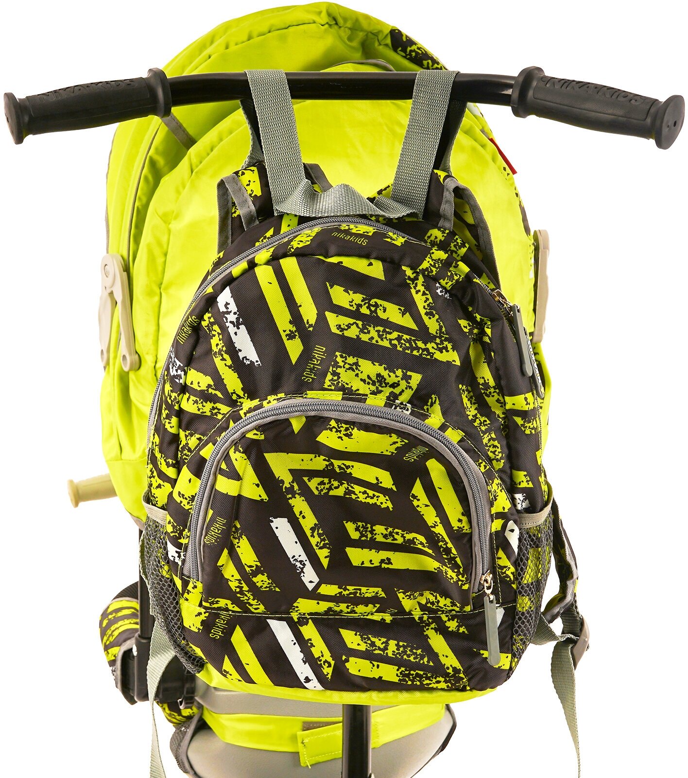 Удобное сиденье с ортопедической спинкой имеет боковую защиту в виде мягких бортиков. Если малыш уснул во время прогулки, бортики послужат удобной подушкой и поддержат его голову. Два положения сидения: «лицом к маме» и «лицом к дороге». Съемный страховочный обод обеспечит дополнительную безопасность. Основная складная подножка и дополнительные съемные пластиковые подножки для детей от 8 месяцев. Съемная родительская ручка управления. Складная крыша с фиксатором. Пластиковый багажник. Многофункциональный органайзер крепиться к родительской ручке. Удобный рюкзак. Увеличенные мягкие шины EVA соответствуют свойствам резиновых накаченных колес