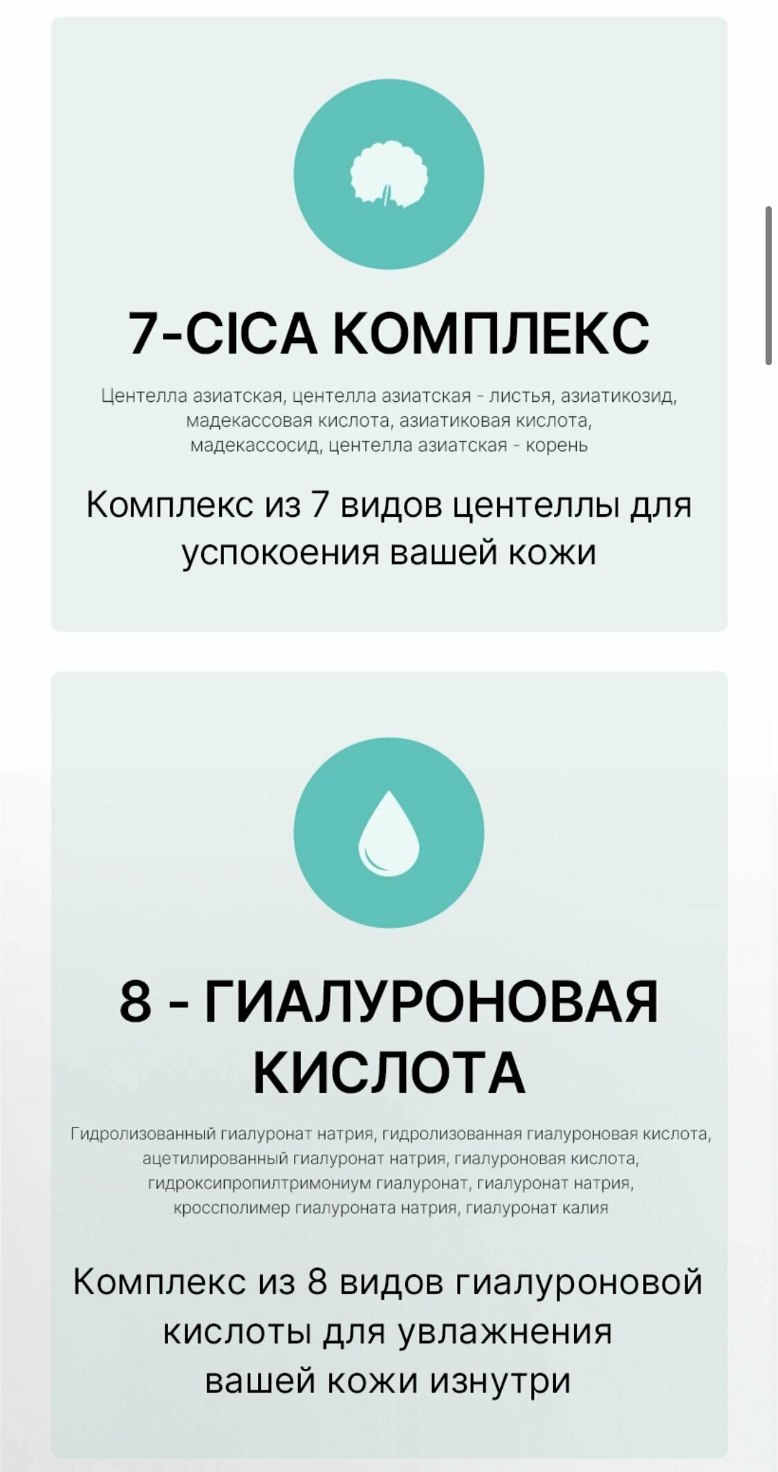 | Активные компоненты | гиалуроновая кислота, экстракт центеллы азиатской |