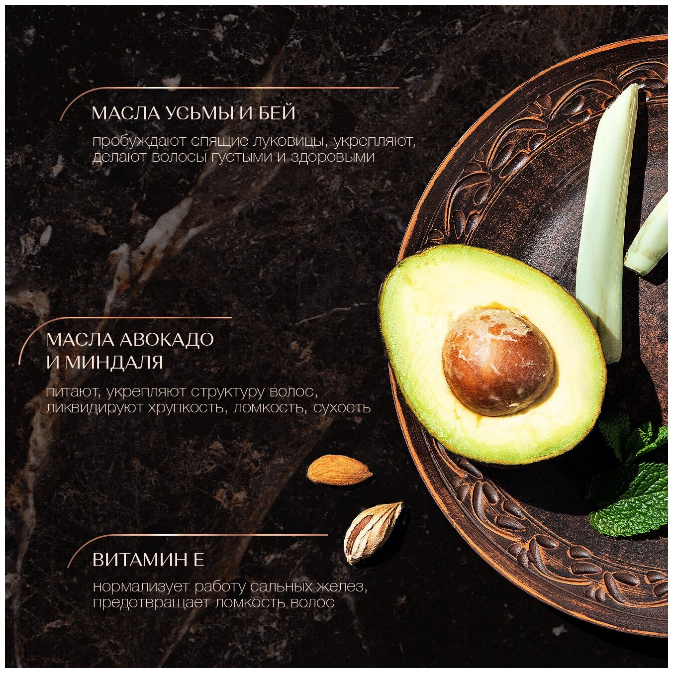 Масло на 100% состоит из компонентов натурального происхождения, разработано для интенсивного питания и комплексного улучшения состояния волос и кожи головы. Формула с экстраукрепляющими маслами усьмы и бей способствует здоровому росту и густоте волос, а также ухаживает за их структурой.