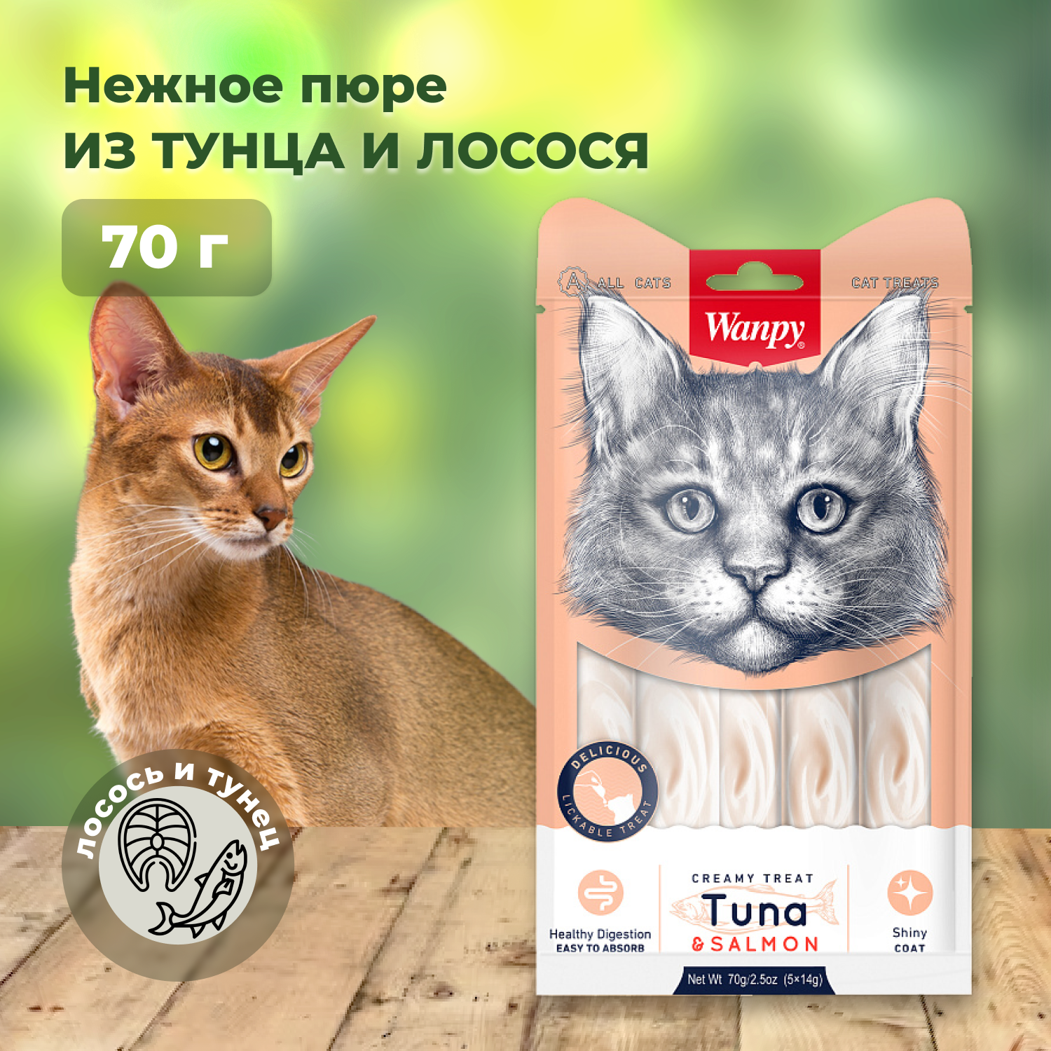 Wanpy Cat Лакомство для кошек "Нежное пюре" (Тунец и лосось 70 г.)