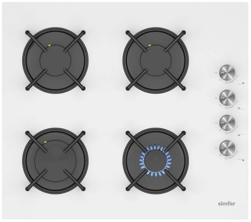 Настольная газовая плита Simfer - модель, которая благодаря своим компактным размерам органично впишется в интерьер вашей кухни и сделает ежедневный процесс приготовления еды комфортным. В качестве материала для изготовления варочной поверхности использовалось закаленное стекло, которое в разы упрощает утомительный процесс ухода за ним и делает процесс очистки лёгким и удобным. На ней располагаются четыре конфорки - разные по диаметру и мощности пламени в них. А значит вы сможете выбрать оптимальную конфорку для приготовления разнообразных блюд. В поворотные переключатели встроен электроподжиг, который значительно упрощает работу с панелью.