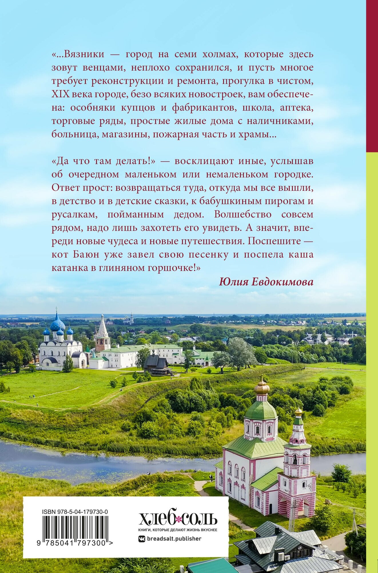 Прекрасные продажи первой книги о России — «К России с любовью. В поисках тишины, восходов и изумрудного варенья» — позволили нам приготовить новую книгу о российских городах, близких от нас и не очень, но таких родных, удивительных своей историей, культурой, былью и небылью и вкуснейшей, особенной в каждом месте, кухней. Юлия Евдокимова своей любовью к путешествиям, еде и людям снова покоряет сердца поклонников, привозя из странствий новые впечатления, истории, блюда. Она увлекает нас за собой во Владимир, Вязники, Муром, «откуда все начиналось», заставляет вспомнить о Коломне, Зарайске, Сергиевом Посаде, которые раскинулись «в двух шагах от Москвы»;