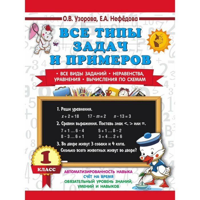 Сервис сравнения цен СкидкаГИД предлагает сравнить цены на товар «Книга: Все типы задач и примеров 1 класс. Все виды заданий. Неравенства уравнения. Вычисления по схемам (Елена Алексеевна Нефедова, Ольга Васильевна Узорова); АСТ, 2024»