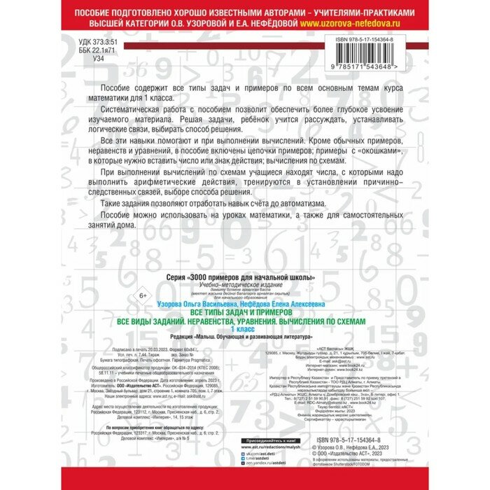 Все типы задач и примеров 1 класс. Все виды заданий. Неравенства уравнения. Вычисления по схемам (Елена Алексеевна Нефедова, Ольга Васильевна Узорова); АСТ, 2024
