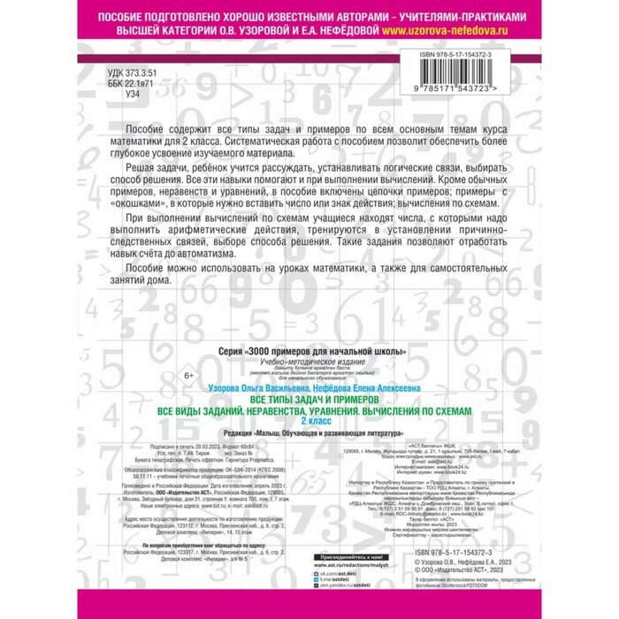 Все типы задач и примеров 2 класс. Все виды заданий. Неравенства уравнения. Вычисления по схемам (Елена Алексеевна Нефедова, Ольга Васильевна Узорова); АСТ, 2025
