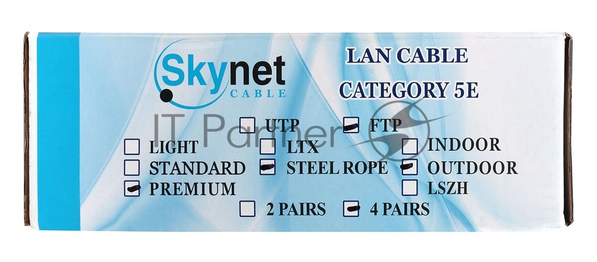 Кабель витая пара F/UTP 5e кат. 4 пары SkyNet Premium outdoor 4x2x051 на тросу медный FLUKE TEST однож. 100 м box CSP-FTP-4-CU-OUTR/100