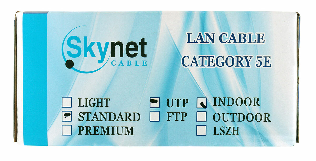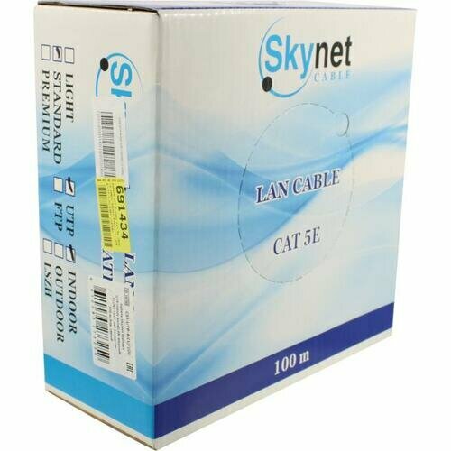 Кабель витая пара U/UTP 5e кат. 4 пары SkyNet Standart indoor 4x2x048 медный FLUKE TEST однож. 100 м box серый CSS-UTP-4-CU/100