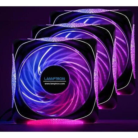 Вентилятор Lamptron , 120х120х25 мм, 1500 об/мин, 30 дБА, PWM, черный, ARGB подсветка, 3 шт в упаковке