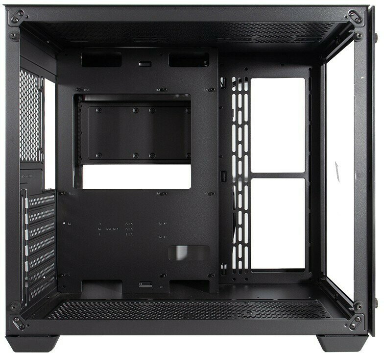 Корпус 1stPlayer MEGAVIEW MV6 Black станет основой мощной игровой системы. Он выполнен из стекла и стали. Через боковую панель просматриваются внутренние детали.