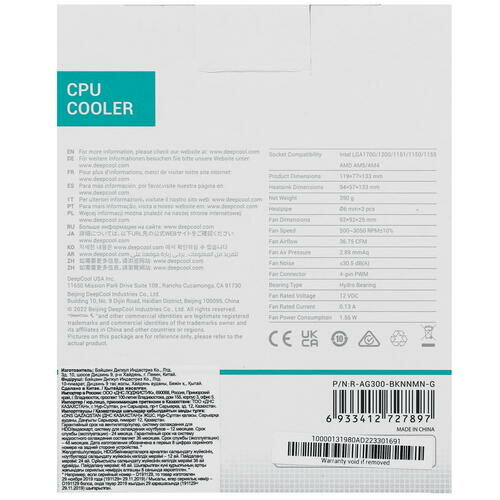 | Краткое название | DEEPCOOL AG300 MARRS LGA1700/1200/115X/AM5/AM4 (36шт/кор, TDP 150Вт, PWM, Static LED Lighting, Fan 92mm, 3 тепл. Трубки прямого контакта) RET |