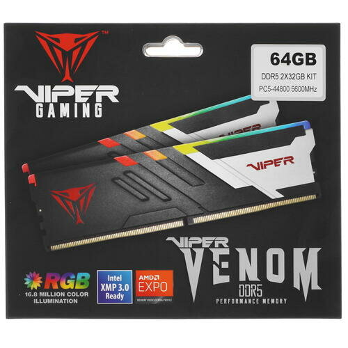 Модуль памяти DDR5 64GB (2*32GB) Patriot Viper Venom RGB 5600Mhz PC5-41600 CL40 1.35V (retail) PVVR564G560C40K