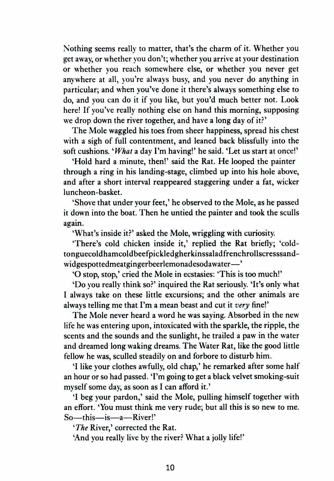 "Ветер в ивах" подробно рассказывает историю мистера Крота, дядюшки Рэтти и мистера Барсука, которые пытаются помочь мистеру Жабе после того, как он становится одержимым автомобилями и попадает в беду. Роман примечателен сочетанием приключений, мистицизма и духа товарищества, а еще - описаниями долины Темзы. В основу романа легли сказки на ночь, которые Грэм рассказывал своему сыну Аластеру.