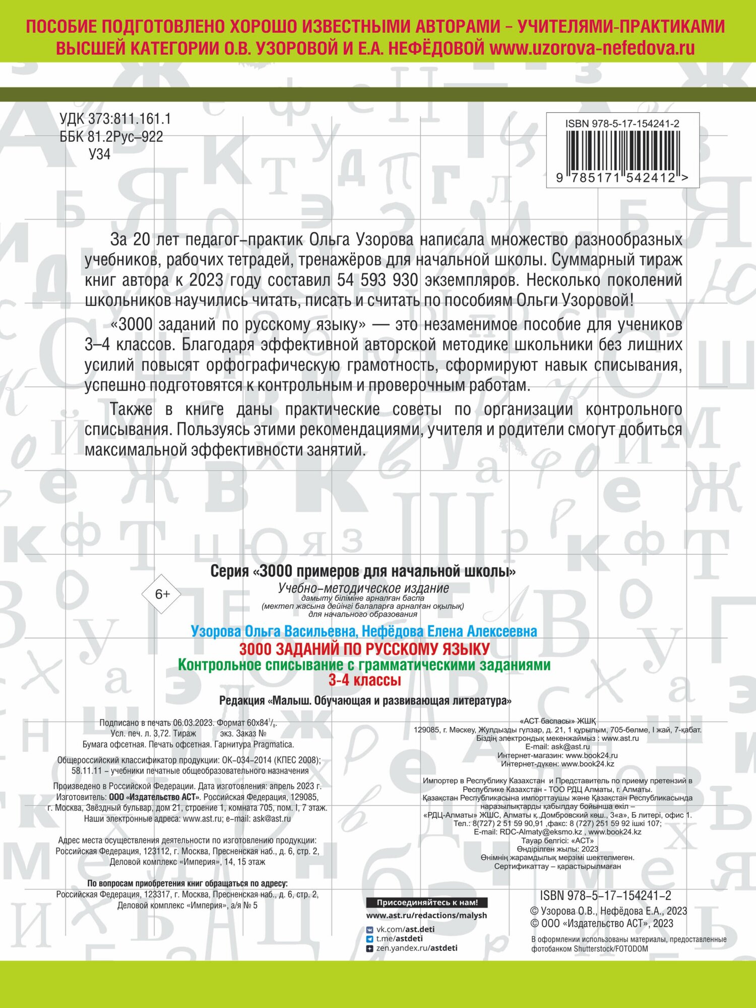 Русский язык. 3-4 классы. Контрольное списывание с грамматическими заданиями (Узорова Ольга Васильевна; Нефедова Елена Алексеевна); Сова. Малыш (Обучающая и развивающая литература), 2023