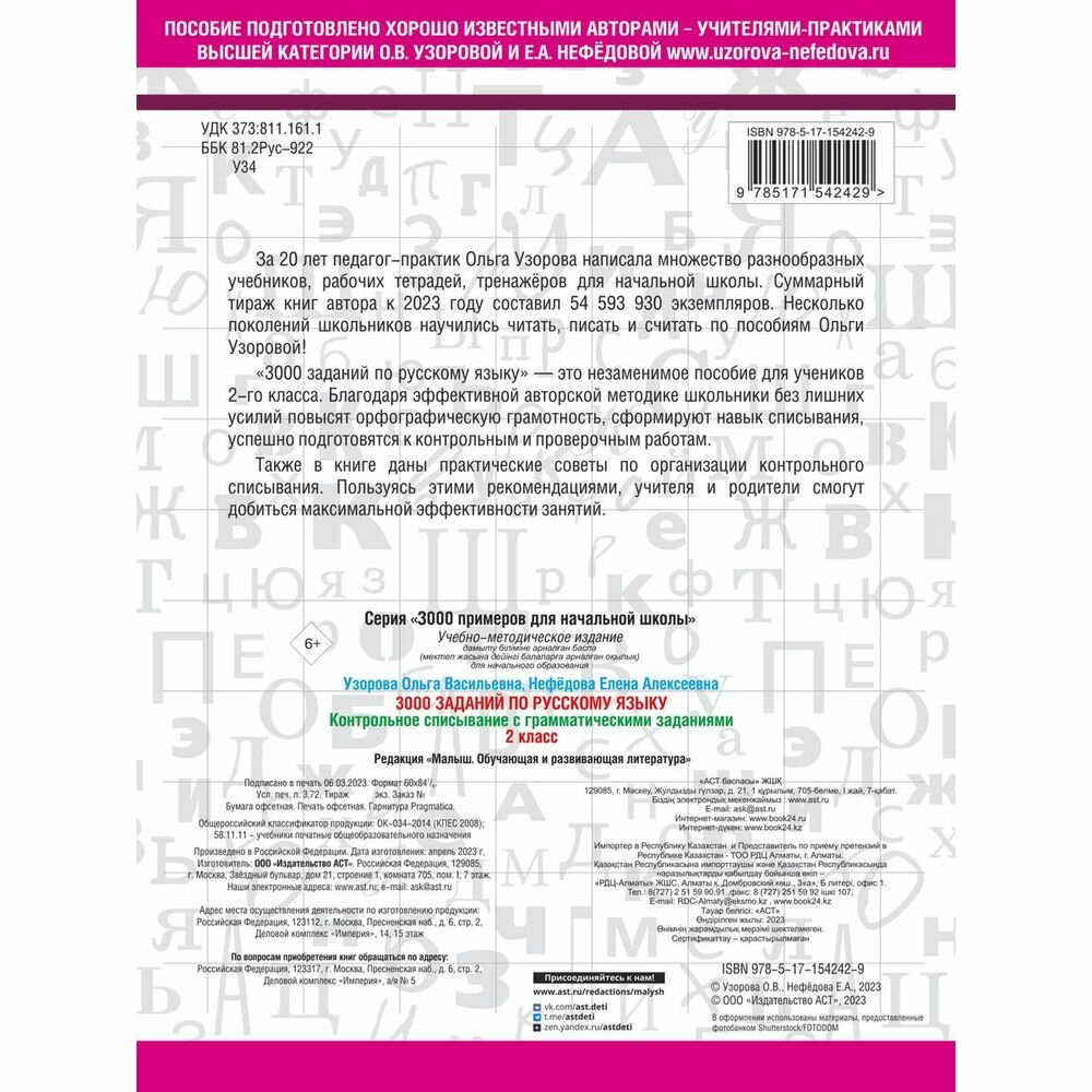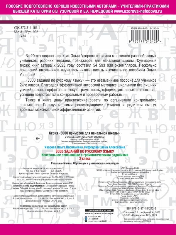 Русски язык. 2 класс. Контрольное списывание с грамматическими заданиями (Узорова Ольга Васильевна; Нефедова Елена Алексеевна); Сова. Малыш (Обучающая и развивающая литература), 2023