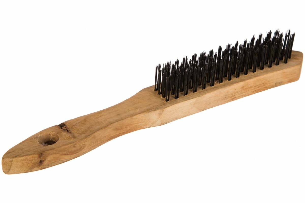 Щетка предназначена для очистки различных поверхностей от коррозии и старой краски. Металл, использующийся в щетине, позволяет эффективно удалять ржавчину, любые ЛКМ с металлических, деревянных и других поверхностей.