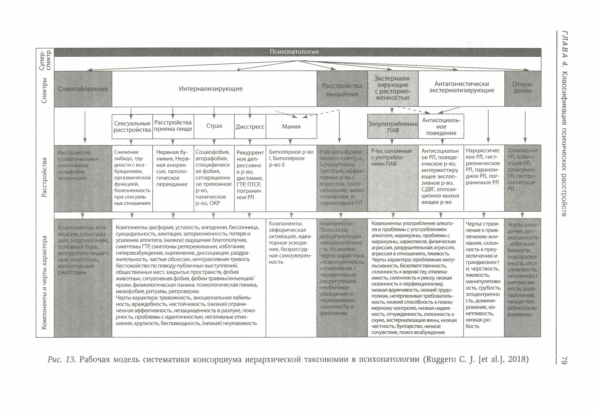 Существенным подспорьем в этом контексте стали инкорпорированные в современные классификации операциональные подходы к определению диагностических критериев. Вместе с тем в ряде разделов приведены и современные представления о генетических, нейровизуализационных, нейрокогнитивных, поведенческих и т. п. коррелятах психических расстройств, которые, по мнению директора Национального института психического здоровья США Томаса Инсела, следует положить в основу новых подходов к систематизации, наряду с виртуальными конструктами типа "переживания утраты", "острой угрозы" и т. п., что, вероятно, будет означать очередную смену парадигмы в психиатрии. Однако приведет ли это к желаемому результату: созданию естественной классификации психических заболеваний? Возможно, в данном контексте следует прислушаться к неоднократно цитировавшемуся мнению Н. Андреасен (1997): "Применение высоких технологий при отсутствии сочетания с благоразумным клиническим подходом, которым должны владеть специалисты в области психопатологии, будет представлять собой одинокую, стерильную и, вероятно, бесплодную инициативу".