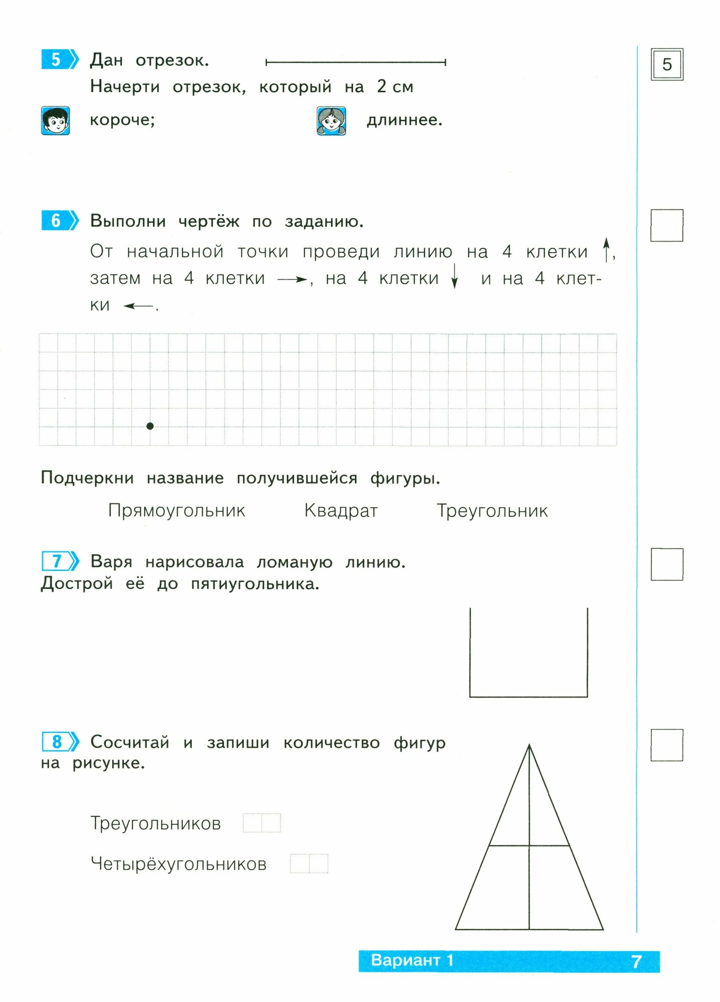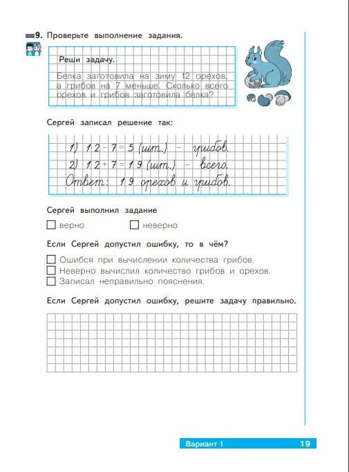 В тетради представлено два варианта проверочных работ по всем темам, изучаемым во 2 полугодии 1 класса. Предлагаемые задания различаются по содержанию, типу выполнения (с выбором ответа, с кратким и развернутым ответом) и уровню сложности. Они основаны на простых учебных и жизненных ситуациях, понятных и близких детям и помогающих им решать разнообразные задачи учебного и практического характера средствами математики. Материал тетради соответствует требованиям ФГОС НОО к уровню подготовки учащихся 1 класса и может использоваться с различными учебно-методическими комплектами.