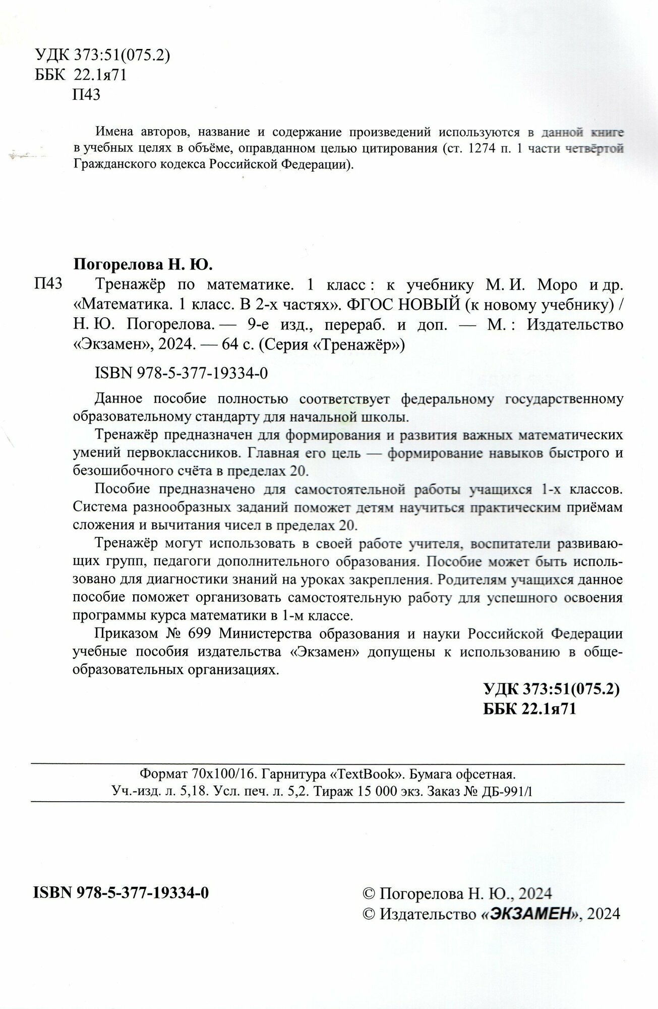 Тренажер по математике. 1 класс: к учебнику М.И. Моро и др. "Математика. 1 класс. В 2-х частях" (Надежда Юрьевна Погорелова); Экзамен, 2026