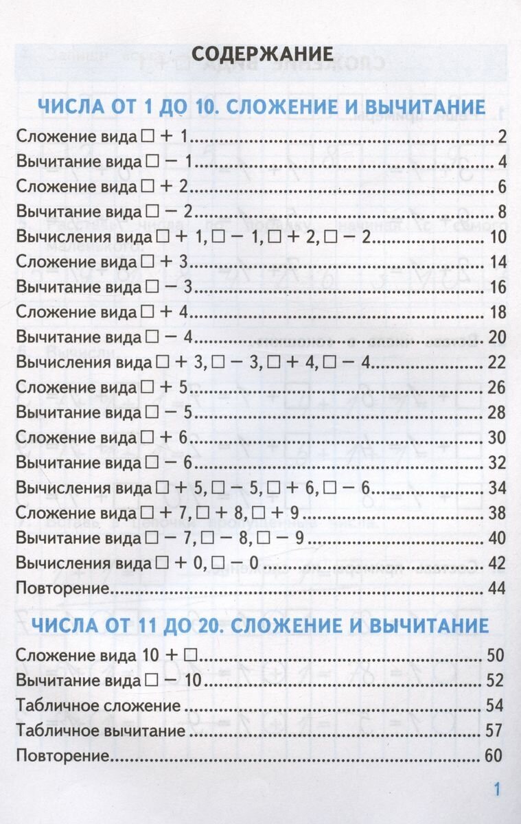 Пособие предназначено для самостоятельной работы учащихся 1-х классов. Система разнообразных заданий поможет детям научиться практическим приёмам сложения и вычитания чисел в пределах 20. Тренажёр могут использовать в своей работе учителя, воспитатели развивающих групп, педагоги дополнительного образования. Пособие может быть использовано для диагностики знаний на уроках закрепления. Родителям учащихся данное пособие поможет организовать самостоятельную работу для успешного освоения программы курса математики в 1-м классе.
