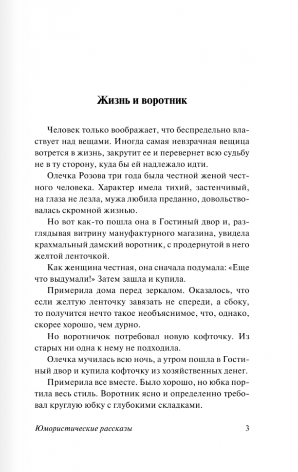 Я ничуть не пожалела о покупке данного сборника, много маленьких рассказов, через которые тонкой нитью проходит любовь к человеку, тонкая ирония над пороками и догмами людей, над модой того времени. Очень полюбила Тэффи за счёт него, читается очень легко, практически все произведения всего в пару страничек, такие лёгкие и понятные.