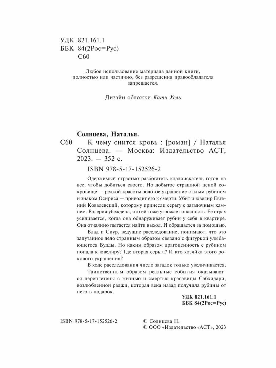 Сервис сравнения цен СкидкаГИД предлагает сравнить цены на товар «Книга: К чему снится кровь (Солнцева Наталья Анатольевна); ООО "Издательство Астрель", 2023»