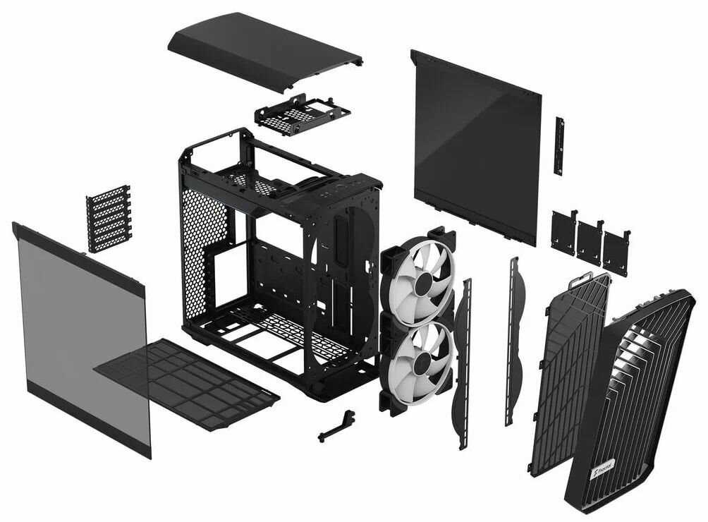 Корпус Fractal Design [FD-C-TOR1C-02] относится к среднеразмерному типу Mid-Tower. В нем можно собрать исключительно мощную игровую или рабочую машину, при этом обеспечив внутренним компонентам максимально возможное охлаждение. Для этого в конструкции предусмотрены открытая решетка радиатора и фронтальные вентиляторы диаметром 180 мм. Кабели внутри корпуса Fractal Design [FD-C-TOR1C-02] получится расположить просто и без хлопот за счет съемной верхней панели и зажимов со стяжками. Светодиодные лампы (версии TG) и вентиляторы с подсветкой RGB управляемы.