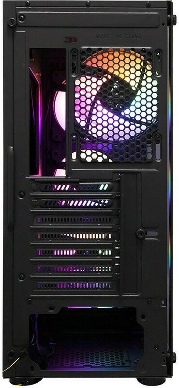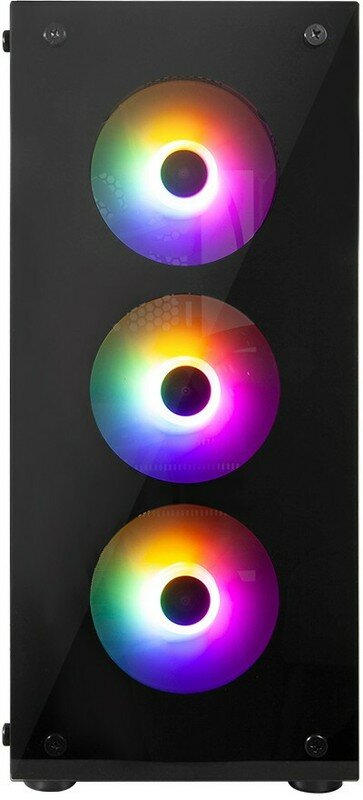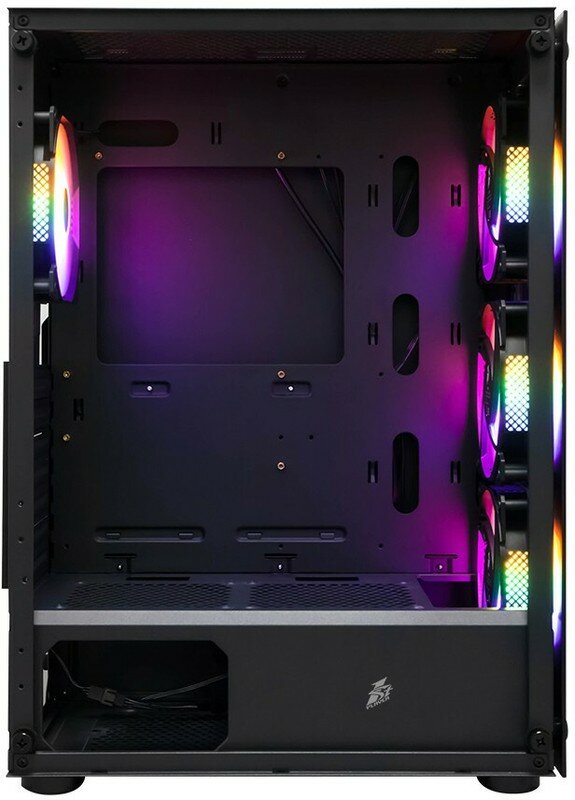 Корпус 1STPLAYER черного цвета станет основой мощной игровой системы. Его конфигурация предусматривает вертикальное размещение материнской платы и установку видеокарты длиной до 320 мм. Изначально в комплекте имеются 4 вентилятора диаметром 120 мм. Место для блока питания форм-фактора ATX располагается снизу. Еще одна особенность корпуса 1STPLAYER – оригинальный дизайн. Он выполнен из стекла и стали толщиной 0.5 мм. Через фронтальную панель просматривается разноцветная подсветка вентиляторов.