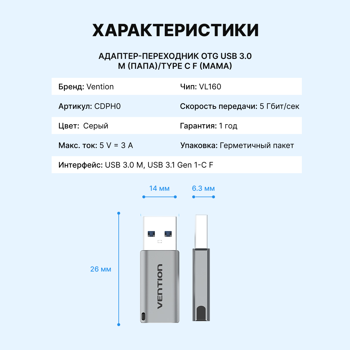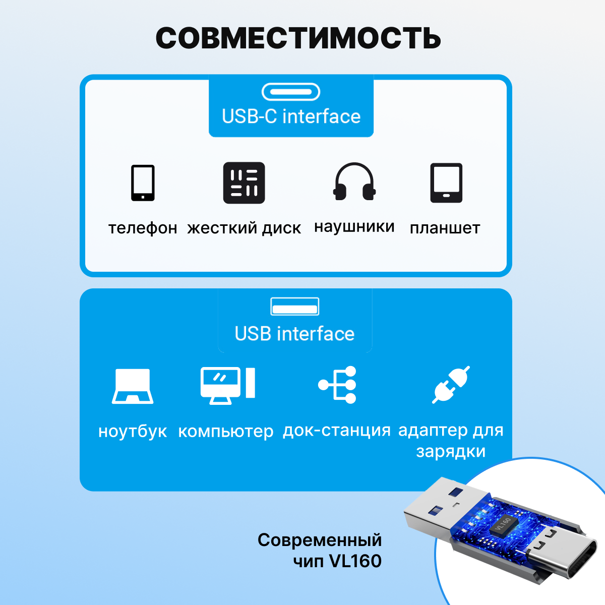 | Разъемы | USB 3.0 A(m) - USB Type-C (f) |