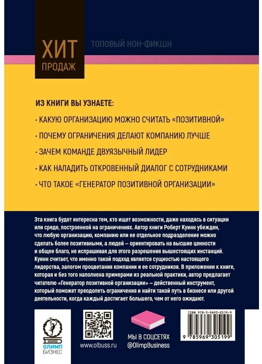 Позитивная организация. Освобождение от стереотипов принуждения консерватизма (Куинн Р.Е.); Олимп-Бизнес, 2023