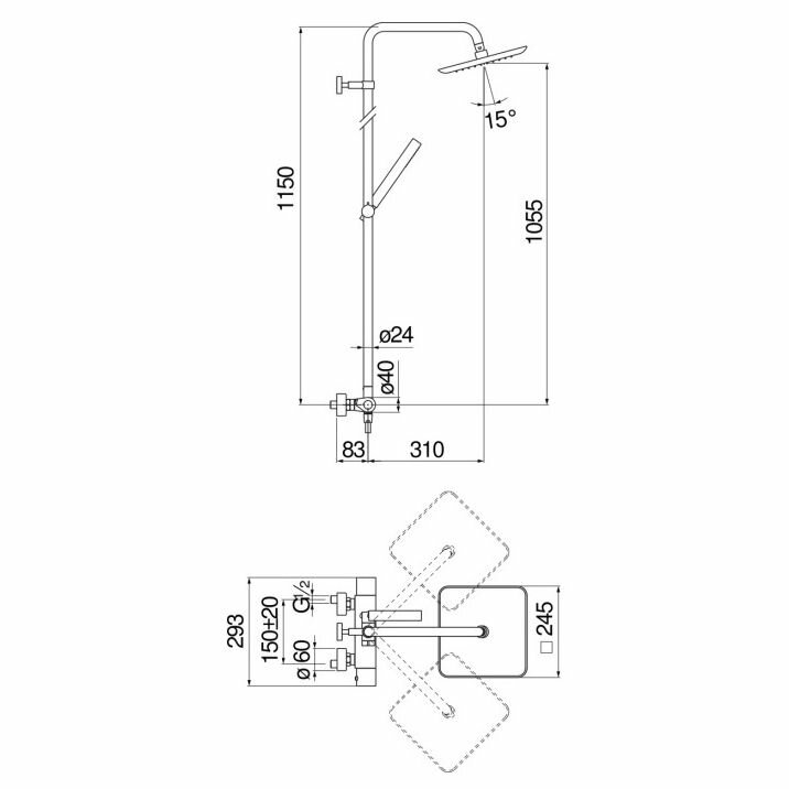 | Размер верхнего душа | 245 |