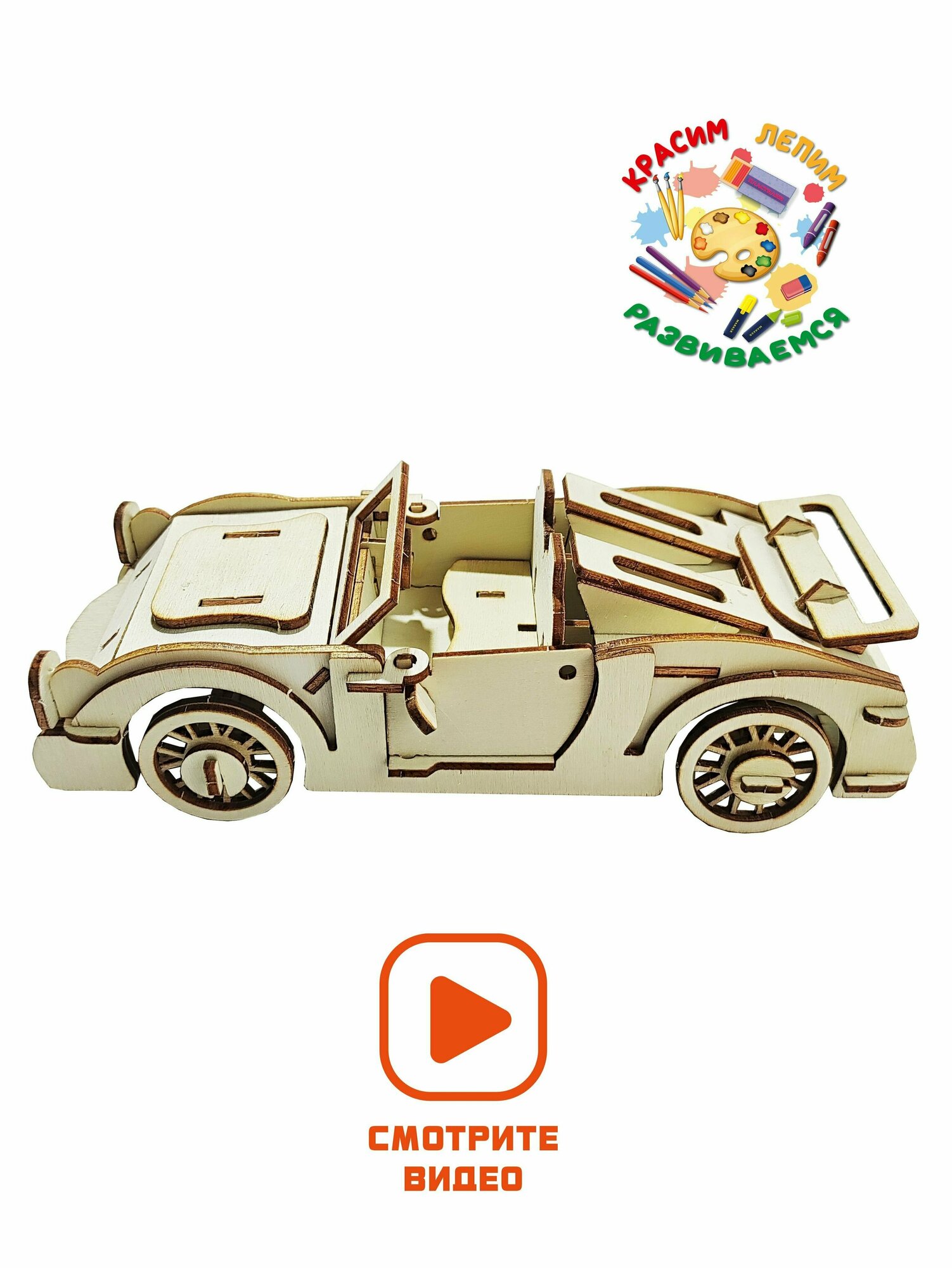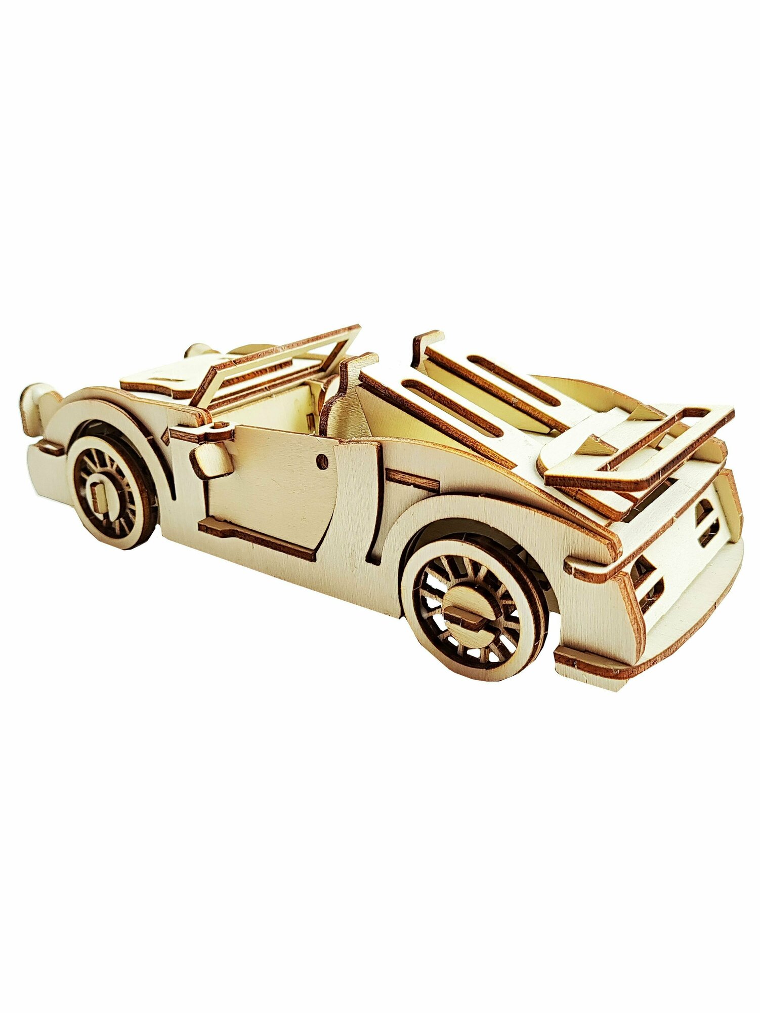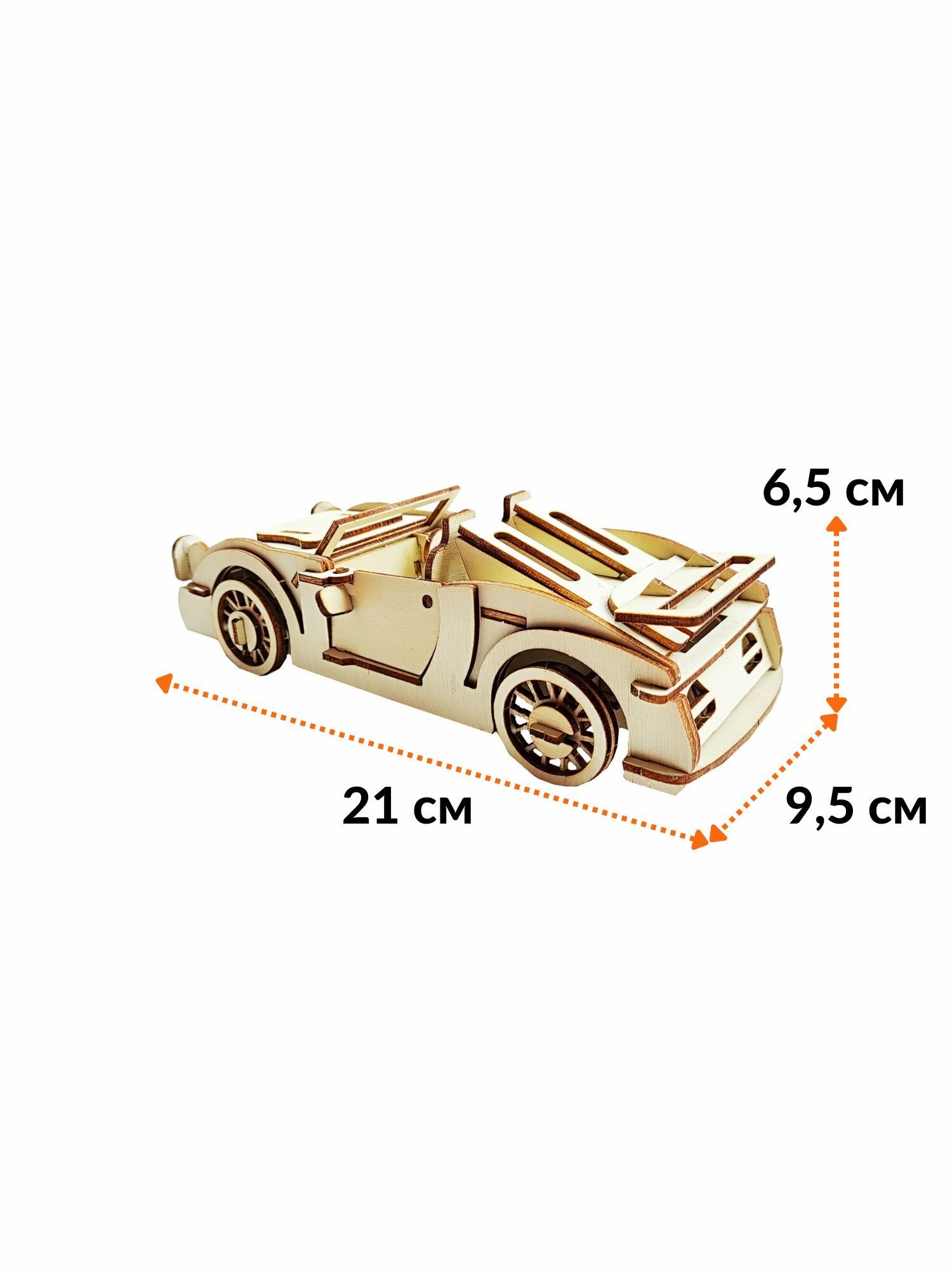 Габариты собранной игрушки: д21 ш9,5 в6,5 см. Модель для сборки Автомобиль, деревянный конструктор детский. Для прочности собранного изделия рекомендуется использовать клей ПВА (в комплект не входит). Входит в топ в категории конструкторы для мальчиков, игрушки для девочек 7 лет. Сборные модели из дерева и 3d конструкторы для взрослых и детей и малышей - полезное и интересное занятие, которое поможет развить память, внимание и воображение. Большой плюс игрушечных моделей в возможности использовать их в интерьерных решениях. Не важно что вам нравится больше - автомобили, грузовики, самолеты, военная техника, поезда, животные, динозавры, любое изделие станет прекрасным подарком для ребенка, мужчины, женщины, друга, отца, сына, матери, подруге, внука, на любой праздник - 23 февраля, новый год, день рождения, 8 марта. Также конструктор из дерева - отличная идея для поделки в детский сад, школу. Теги: машинка, кабриолет, спорткар.